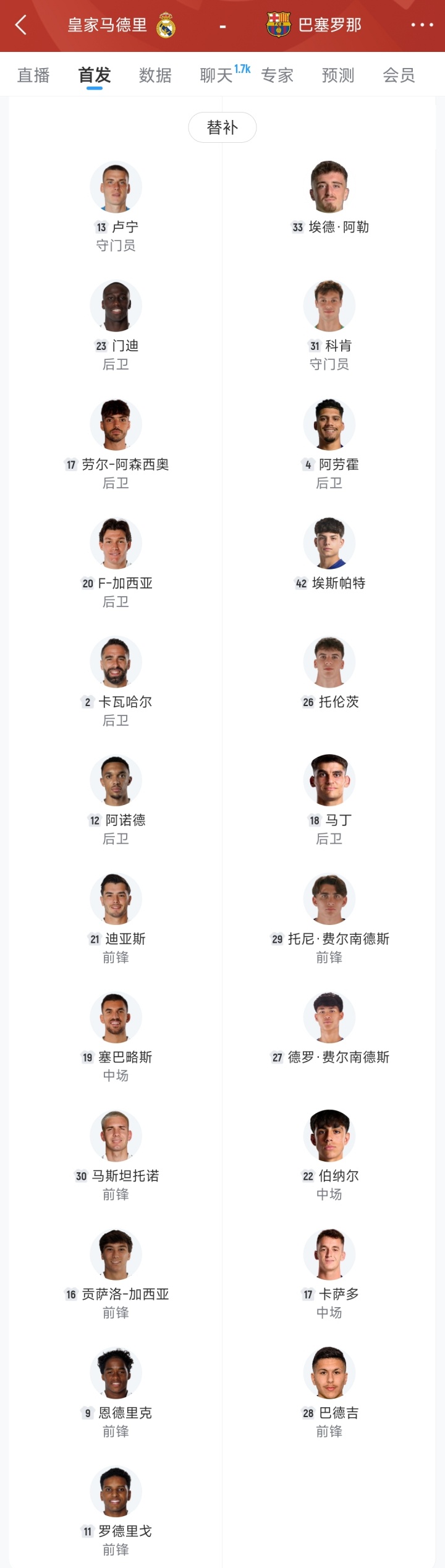 那场赛事 的巴萨后备 席上,身价最高的是3500万欧元的阿劳霍,11名球员中有8人年龄在20岁以下,其中德罗·费尔南德斯和托尼·费尔南德斯只有17岁。