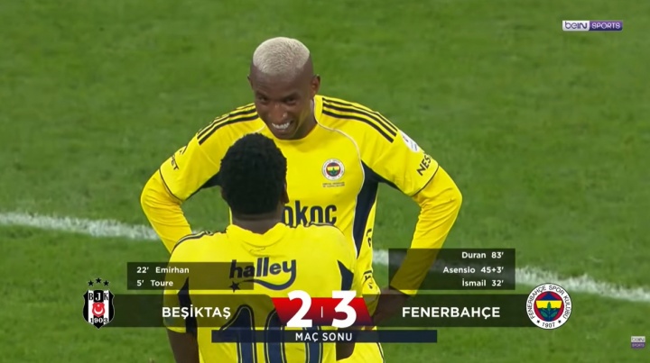 疯狂德比!费内巴切让2追3,阿笑扳平,杜兰致胜球 10人贝西克塔斯
