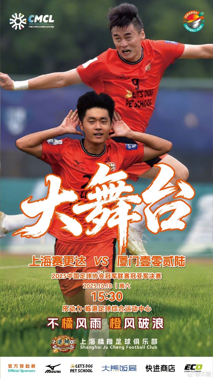 10月18日讯 中冠冠第二名 争夺战首局 ,上海橘橙将对阵厦门壹零贰陆。