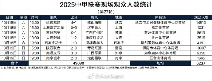 2025中甲职业联赛 现场观赛人群 人数统计(第27轮)