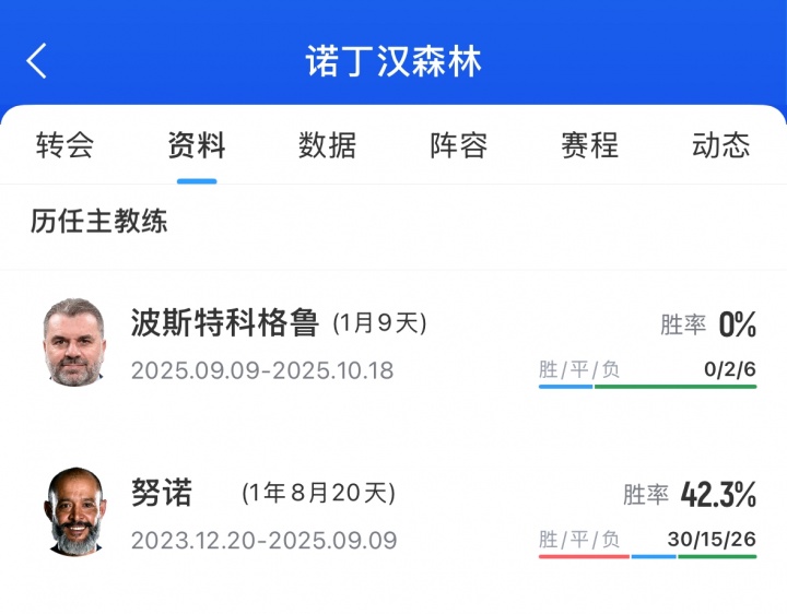 本赛季英超开赛8轮,诺丁汉森林先后解雇了努诺和波斯特科格鲁,其中波斯特科格鲁甚至只带队39天就惨遭下课。诺丁汉森林目前8轮5分位列英超降级区,距离安全区差2分。