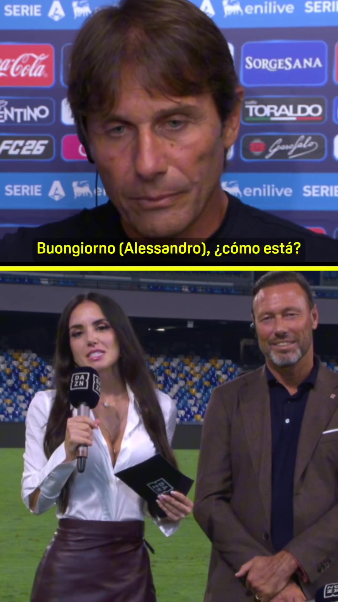 演小品呢🤣美女记者问布翁乔尔诺情况,孔蒂误以为在向他道早安