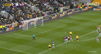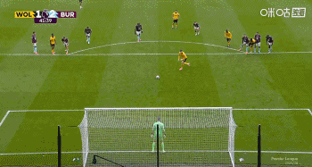 拉尔森主罚十二码球扳回一球,狼队1-2伯恩利。↓