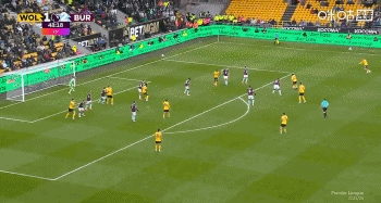 第13分钟,伯恩利长传送到前场,弗勒明在大危险区域 线上凌空低射直接将球打进,伯恩利1-0狼队。↓