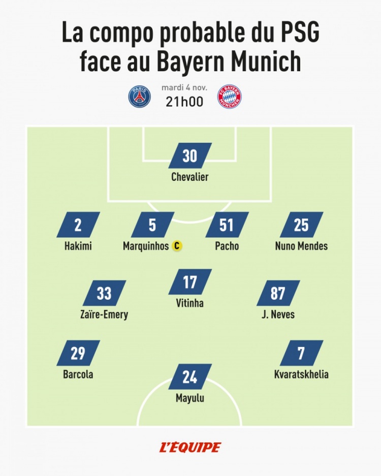 11月4日讯 北京时间明天凌晨4点,巴黎将在欧冠职业联赛 阶段第四轮赛事 中主场作战 对阵拜仁,法国媒体《队报》预测了巴黎此役的杆位阵形 ,世界杯直播免费高清在线观看考虑到登贝莱的身体竞技状态 ,他是否会杆位仍不确定。