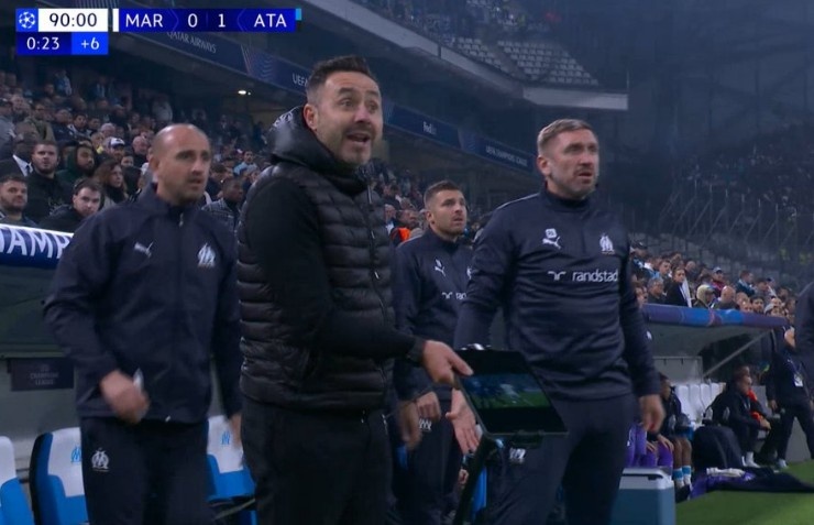 马赛主帅德泽尔比手拿IPAD愤怒的向裁判 表示对手在得分 前手球运动 违例 ,免费英超直播在线观看但是裁判 依然认定得分 有效。