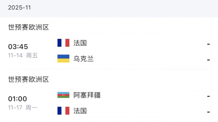 法国队目前在世预赛欧洲区D组排名榜首,本期国家队赛事 日他们将对阵乌克兰和阿塞拜疆。