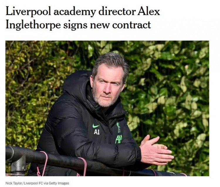 已任职11年之久,TA:利物浦和青训总监英格尔索普完成续约