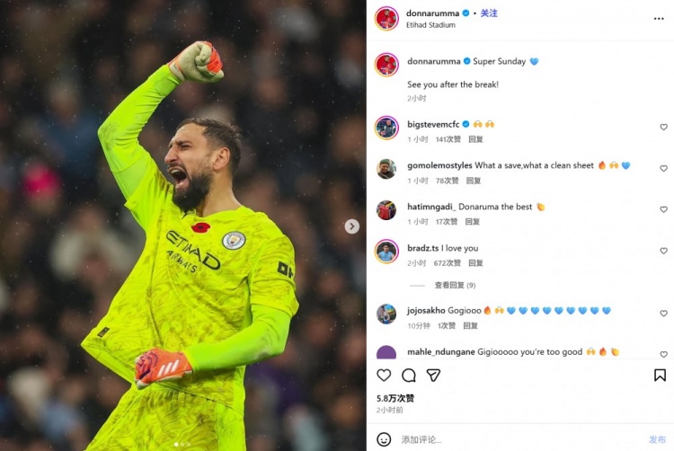 零封利物浦!多纳鲁马社媒晒庆祝照:超级星期日!间歇期之后再会