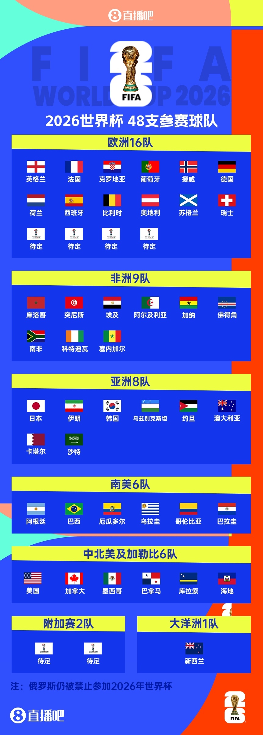 2026美加墨世界杯赛 48队(世预赛直通42队)